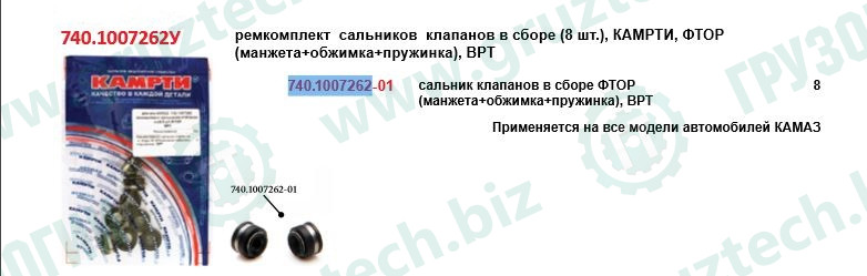 Манжета клапанов 8шт/кт черный КАМРТИ в категории ЗАПЧАСТИ для а/м КАМАЗ, артикул 740-1007262У. Цена — 390 руб. Оригинальная деталь с гарантией качества. Оформите заказ на 740-1007262У Манжета клапанов 8шт/кт черный КАМРТИ с доставкой по всей России для надежного ремонта авто.